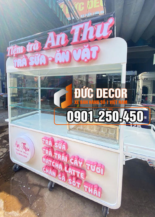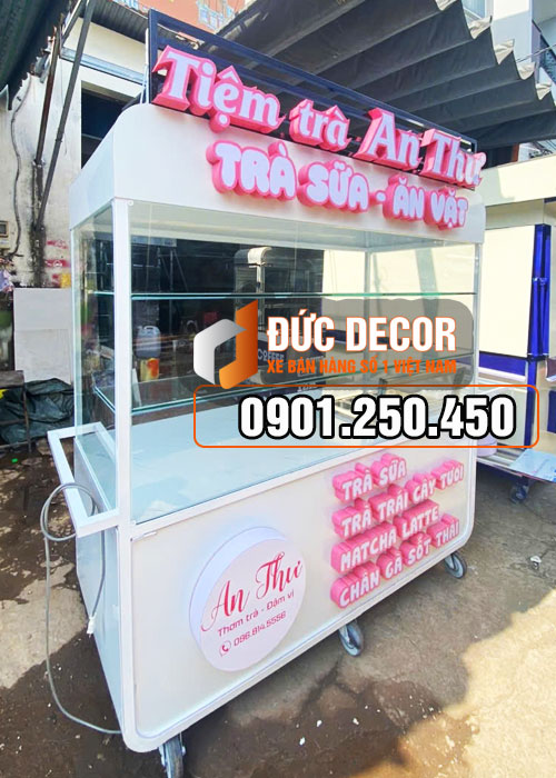 Xe bán trà sữa bằng sắt 1M8x60x1M95